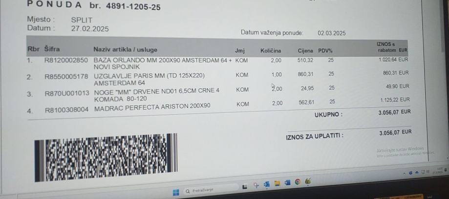 Trenutna cijena u dućanu kreveta istih dimenzija i specifikacija iznosi 3056,07€.