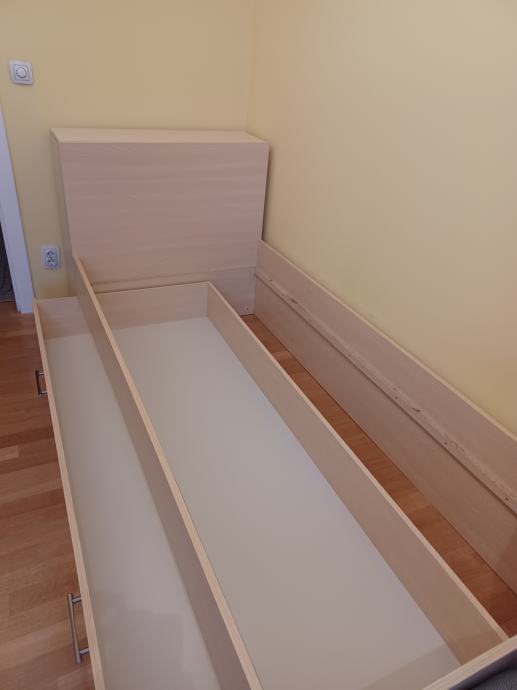 Ako postoji interes, prodajem i drveni spremnik (iza uzglavlja na slici) u vrlo sličnoj nijansi kao i krevet.