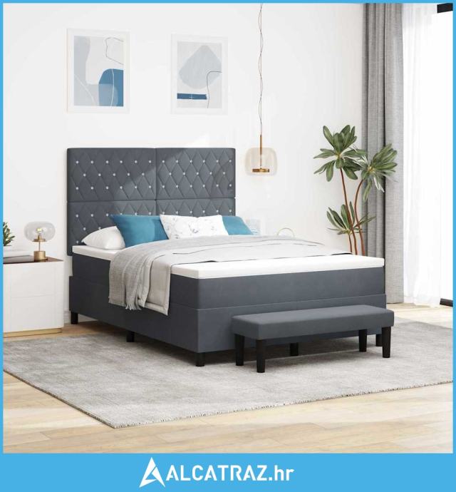 Krevet s Okvirom s Madracem i Klupicom Tamno Sivi 140x190 cm Baršun -
