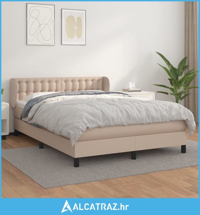Krevet s oprugama i madrac cappuccino 140x200cm od umjetne kože - NOVO