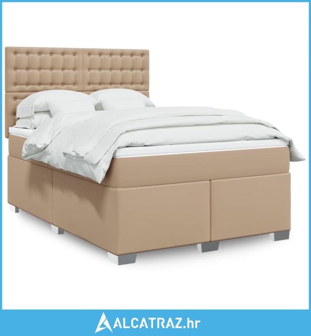 Krevet s oprugama i madrac cappuccino 140x200cm od umjetne kože - NOVO