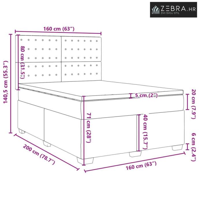 Dimenzije: 160 x 200 x 20 cm (Š x D x V)