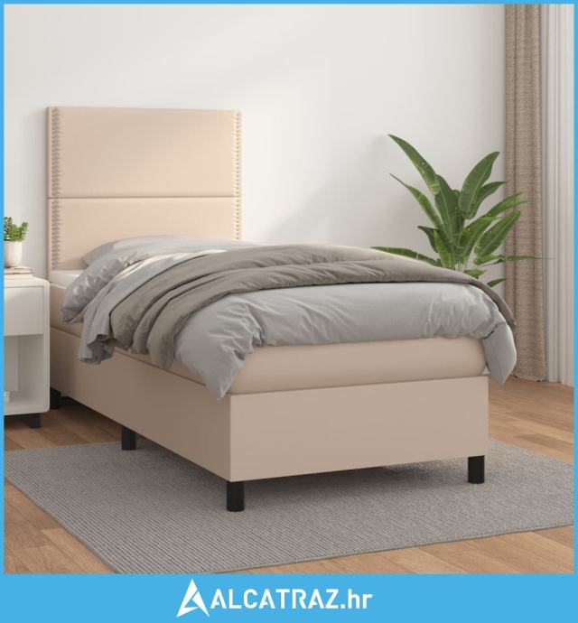 Krevet s oprugama i madrac cappuccino 90x190 cm od umjetne kože - NOVO