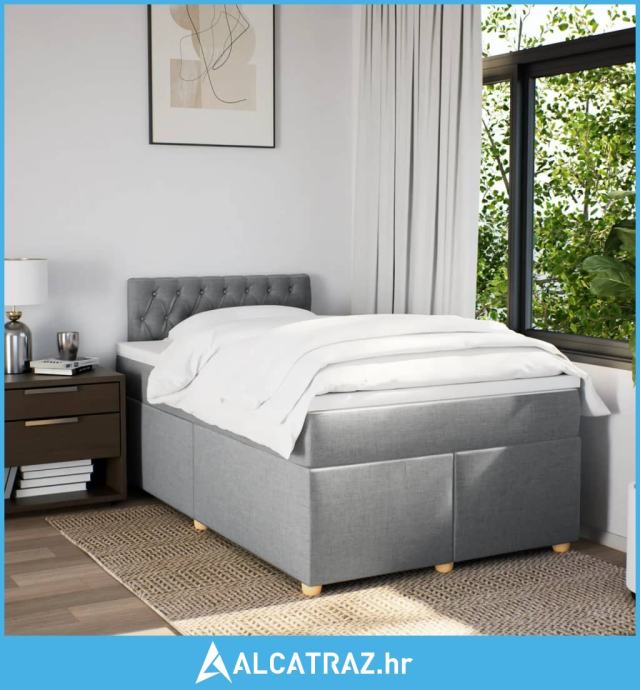 Krevet s oprugama i madrac svjetlosivi 120 x 200cm od tkanine - NOVO