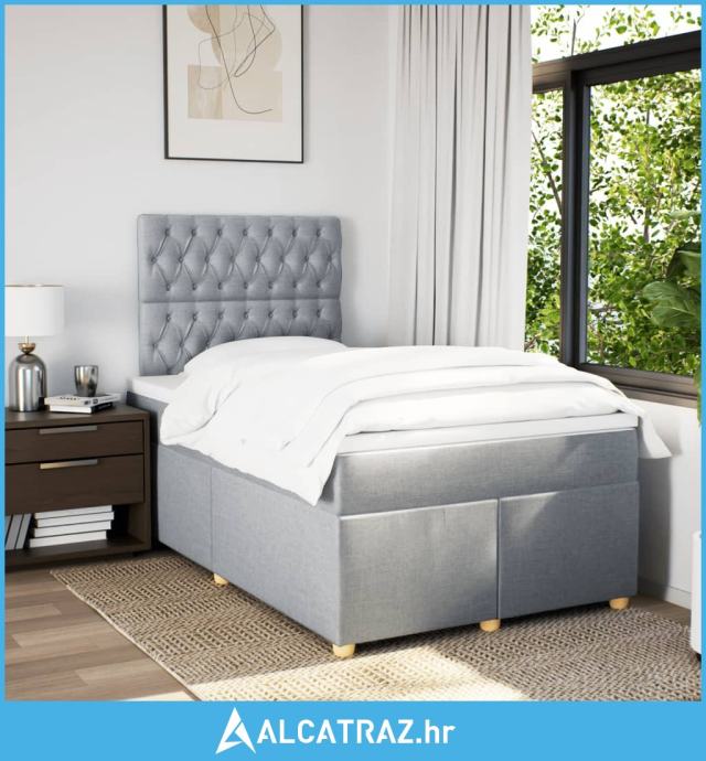 Krevet s oprugama i madrac svjetlosivi 120 x 200cm od tkanine - NOVO