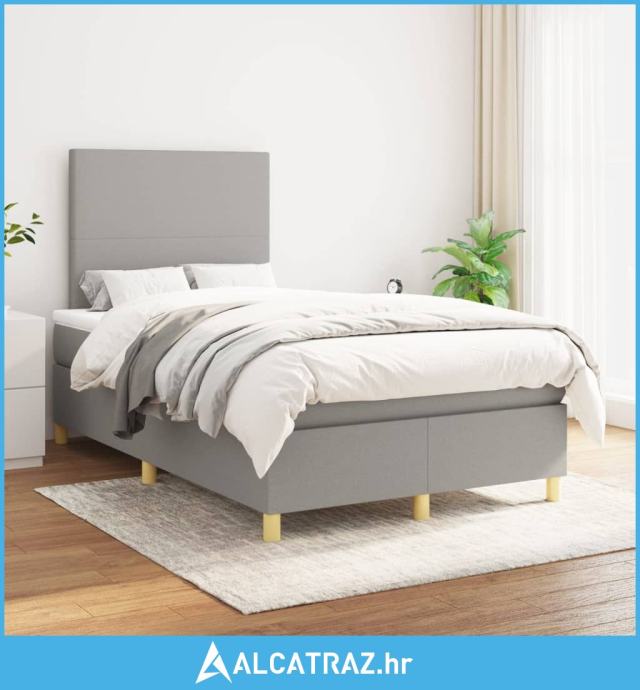 Krevet s oprugama i madrac svjetlosivi 120 x 200cm od tkanine - NOVO