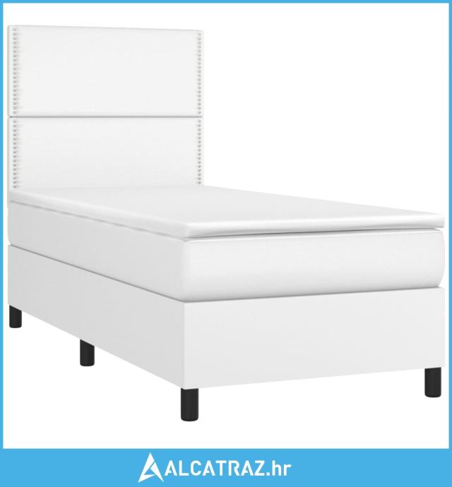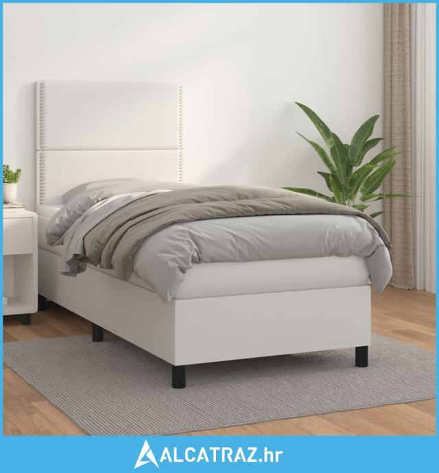 Krevet s oprugama i madracem bijeli 100x200 cm od umjetne kože - NOVO