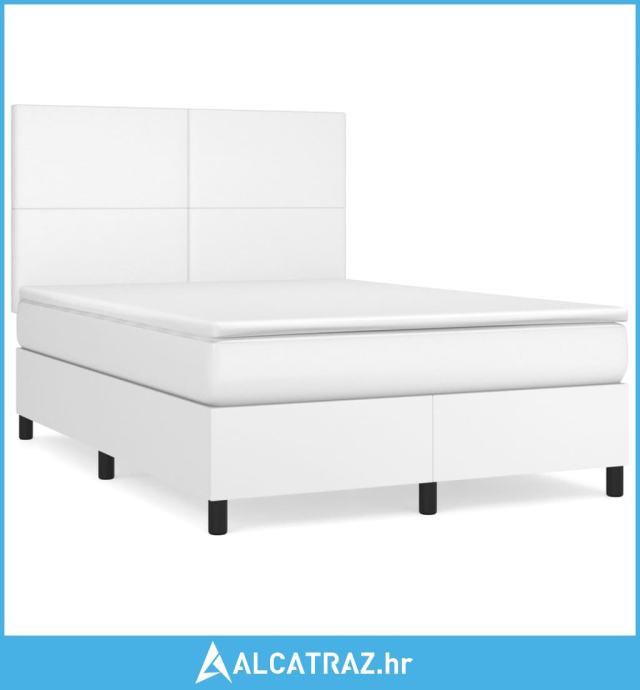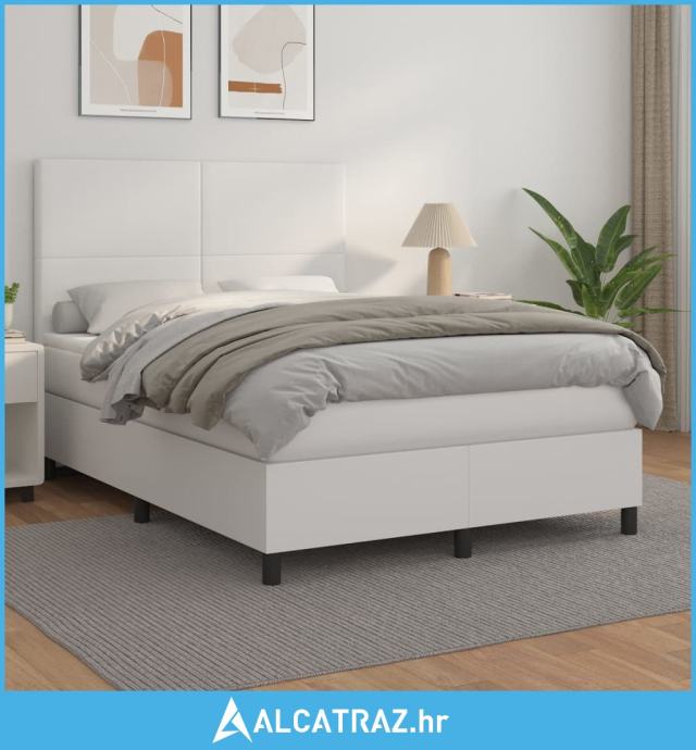 Krevet s oprugama i madracem bijeli 140x190 cm od umjetne kože - NOVO