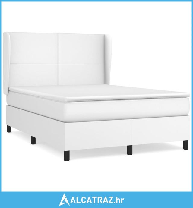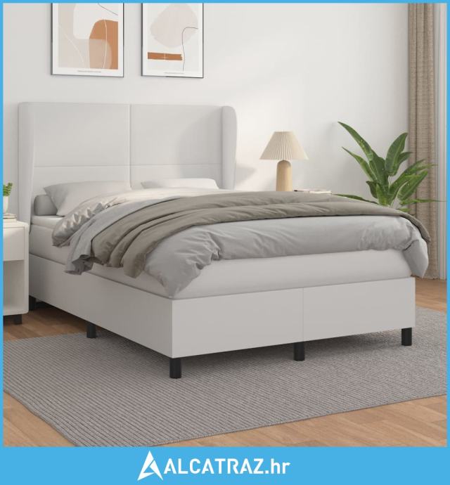 Krevet s oprugama i madracem bijeli 140x190 cm od umjetne kože - NOVO