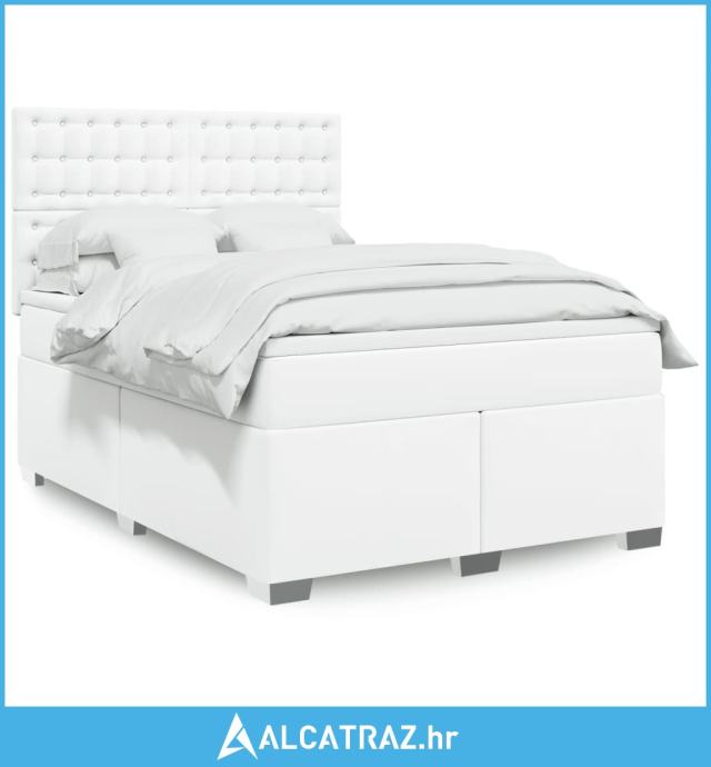 Krevet s oprugama i madracem bijeli 140x190 cm od umjetne kože - NOVO