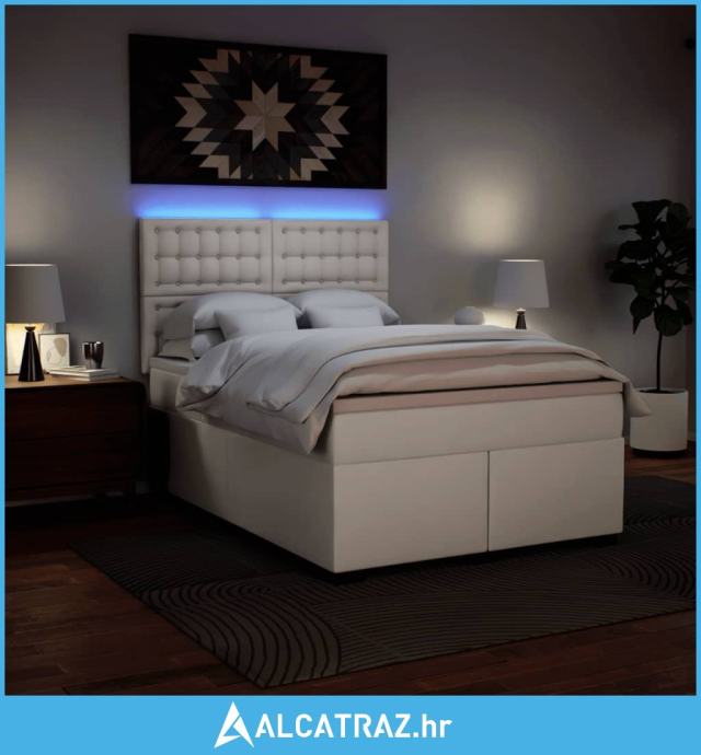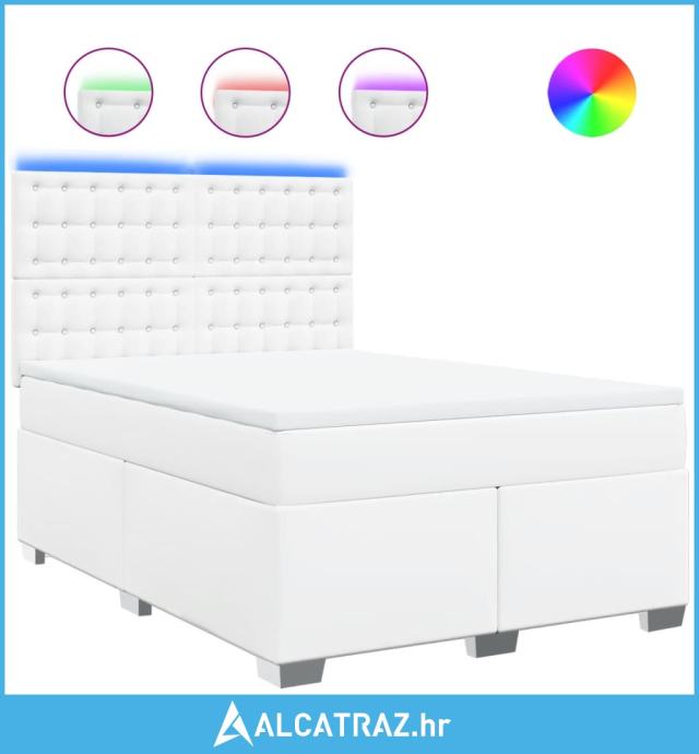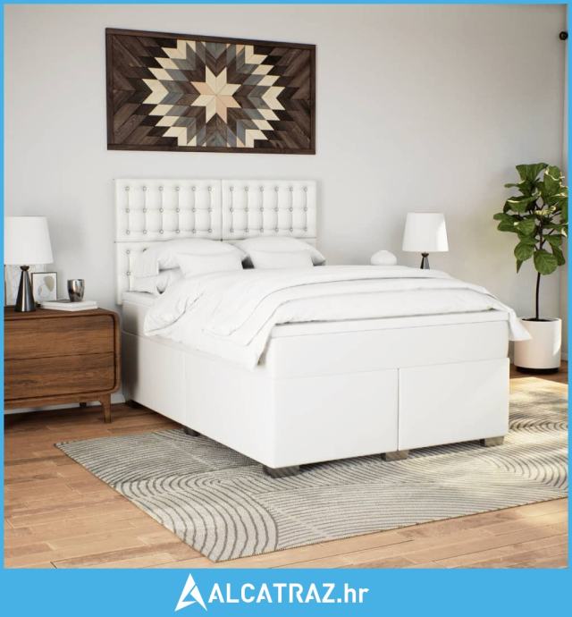 Krevet s oprugama i madracem bijeli 140x200 cm od umjetne kože - NOVO
