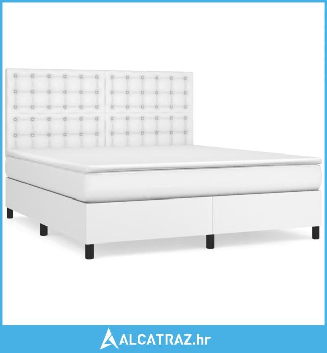 Krevet s oprugama i madracem bijeli 160x200 cm od umjetne kože - NOVO