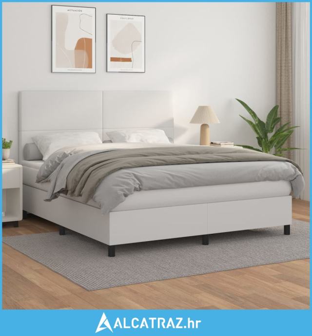 Krevet s oprugama i madracem bijeli 180x200 cm umjetna koža - NOVO