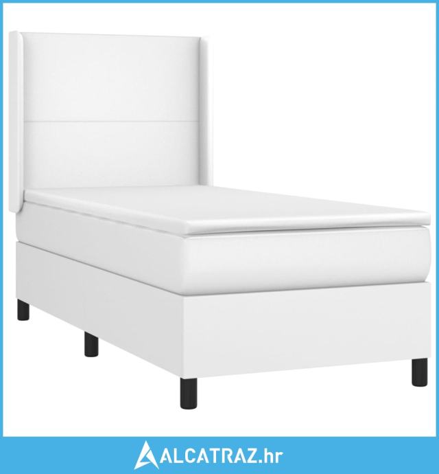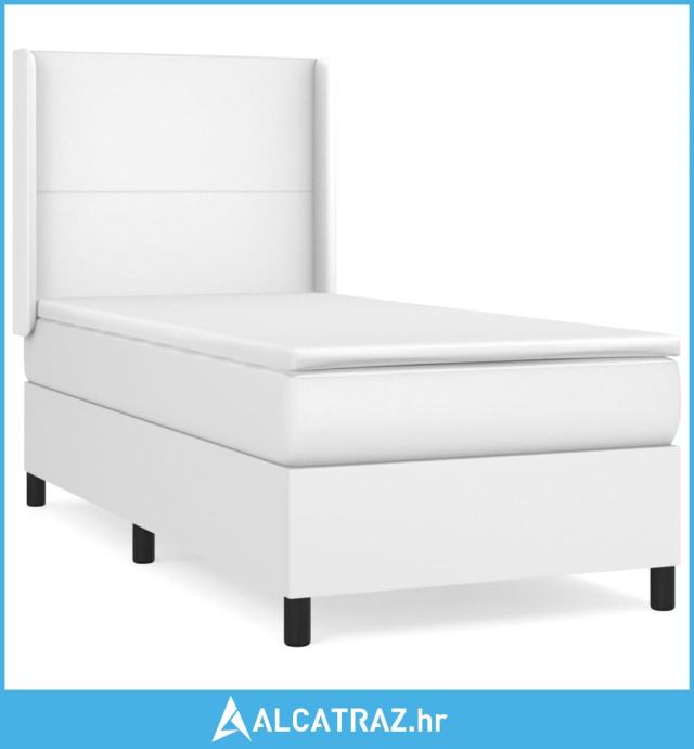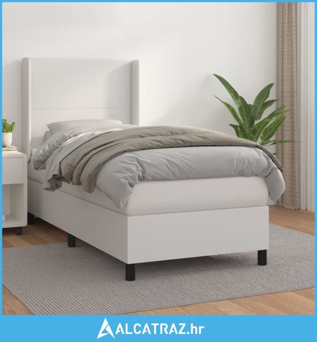 Krevet s oprugama i madracem bijeli 90 x 200 cm od umjetne kože - NOVO