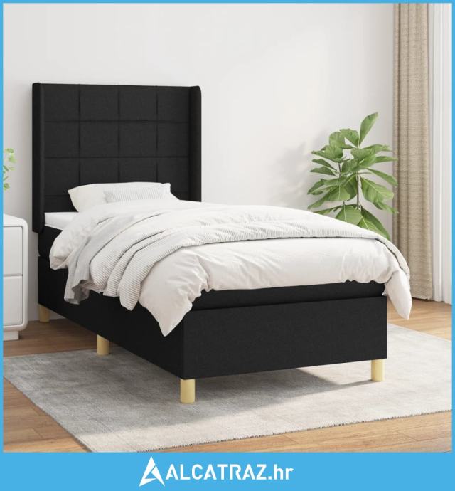 Krevet s oprugama i madracem crni 100 x 200 cm od tkanine - NOVO