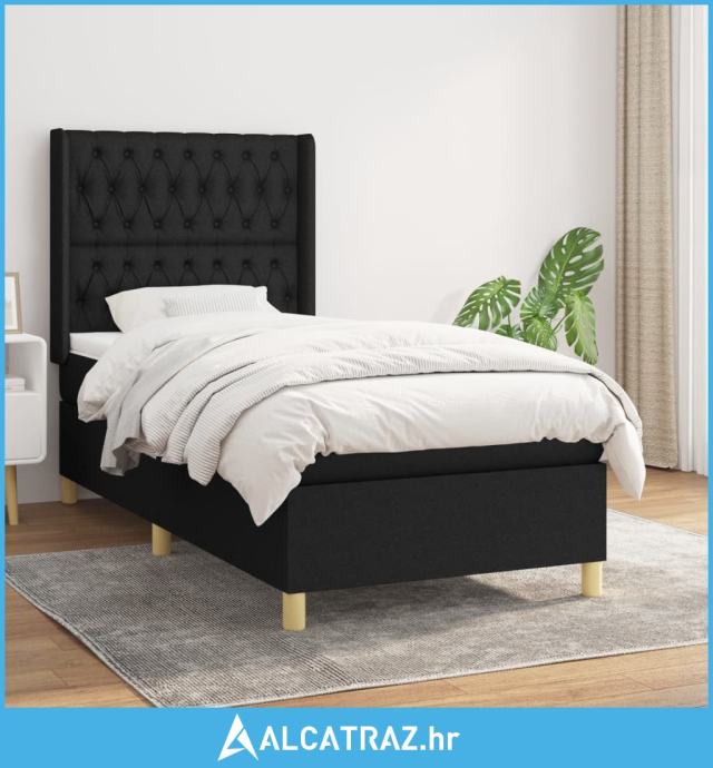 Krevet s oprugama i madracem crni 100 x 200 cm od tkanine - NOVO