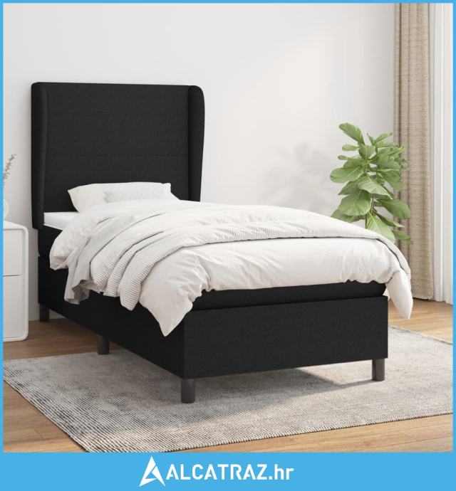 Krevet s oprugama i madracem crni 100 x 200 cm od tkanine - NOVO