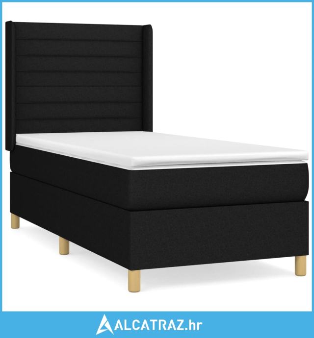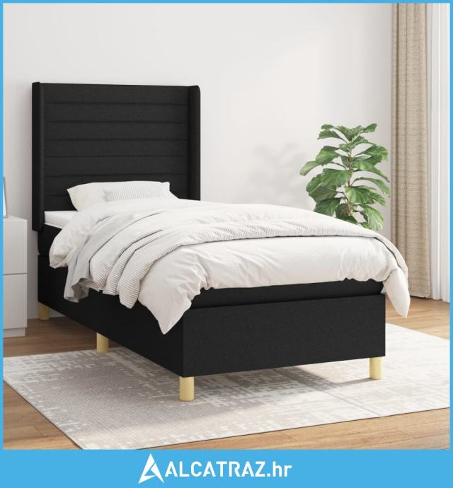 Krevet s oprugama i madracem crni 100 x 200 cm od tkanine - NOVO
