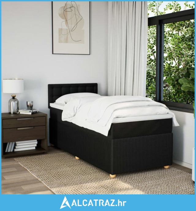 Krevet s oprugama i madracem crni 100 x 200 cm od tkanine - NOVO