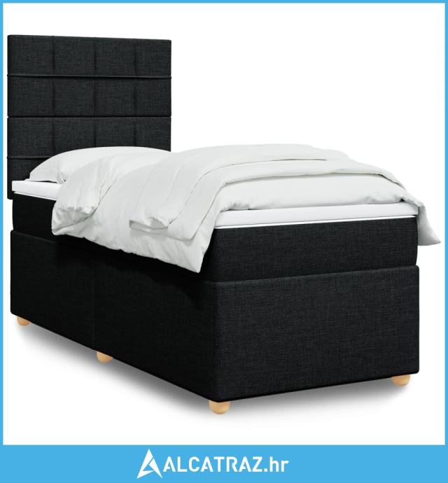 Krevet s oprugama i madracem crni 100 x 200 cm od tkanine - NOVO