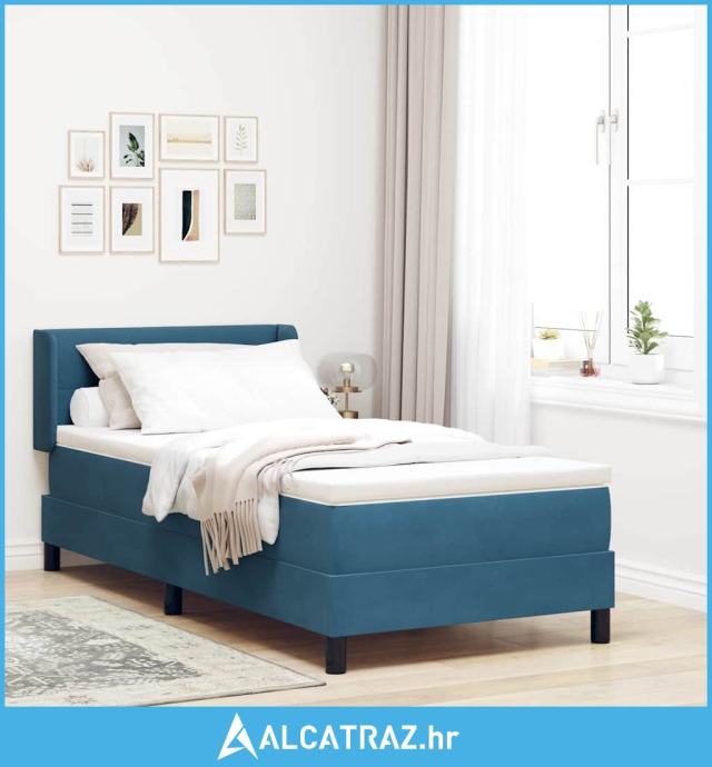 Krevet s oprugama i madracem Crni 100x200 cm Baršun Tamno plava - NOVO