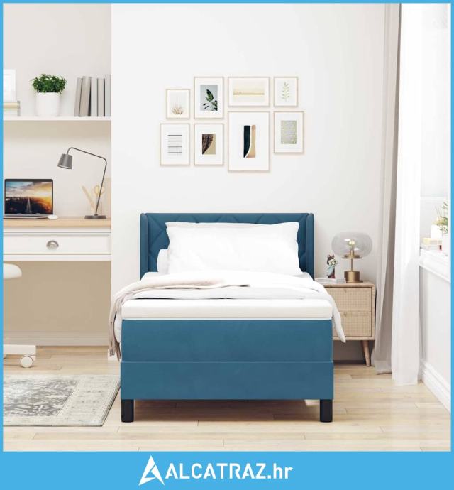 Krevet s oprugama i madracem Crni 100x200 cm Baršun Tamno plava - NOVO