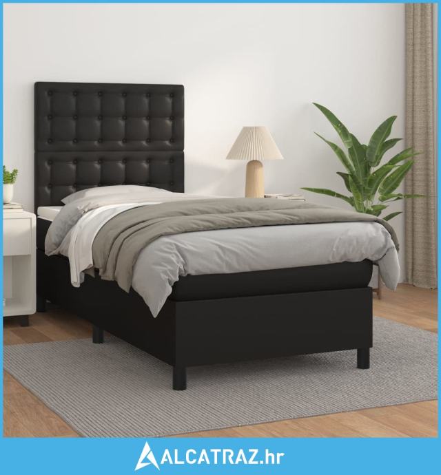 Krevet s oprugama i madracem crni 100x200 cm od umjetne kože - NOVO