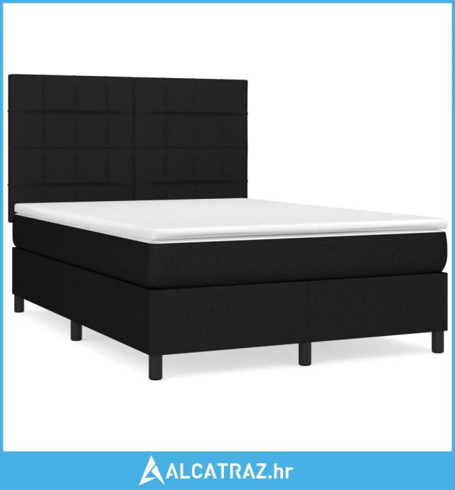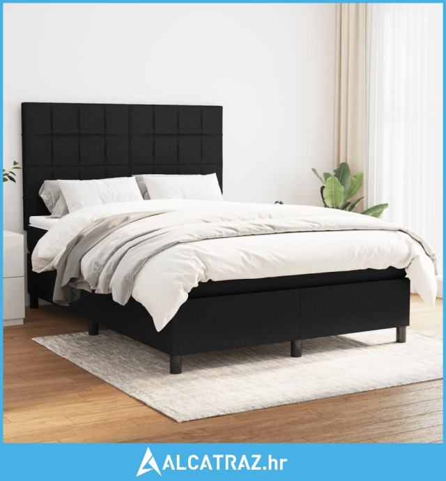 Krevet s oprugama i madracem crni 140 x 190 cm od tkanine - NOVO