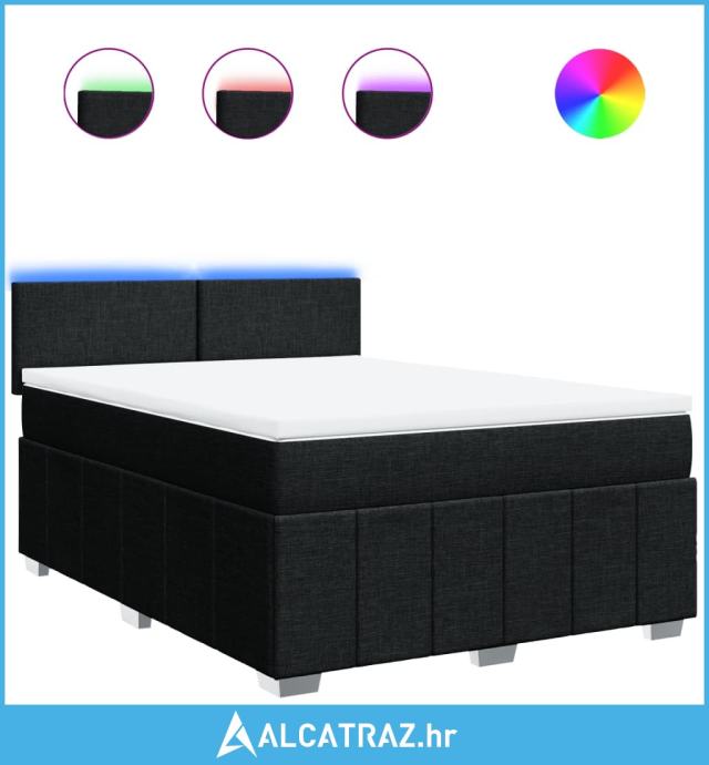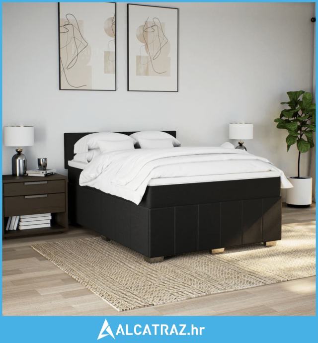 Krevet s oprugama i madracem crni 140 x 190 cm od tkanine - NOVO