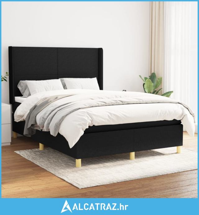 Krevet s oprugama i madracem crni 140 x 190 cm od tkanine - NOVO