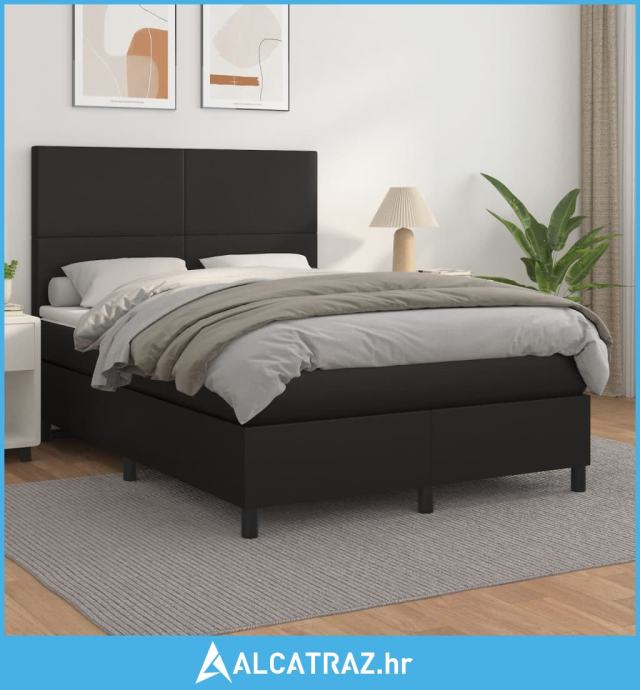 Krevet s oprugama i madracem crni 140 x 190 cm od umjetne kože - NOVO