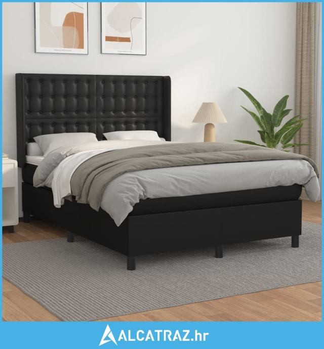 Krevet s oprugama i madracem crni 140 x 190 cm od umjetne kože - NOVO