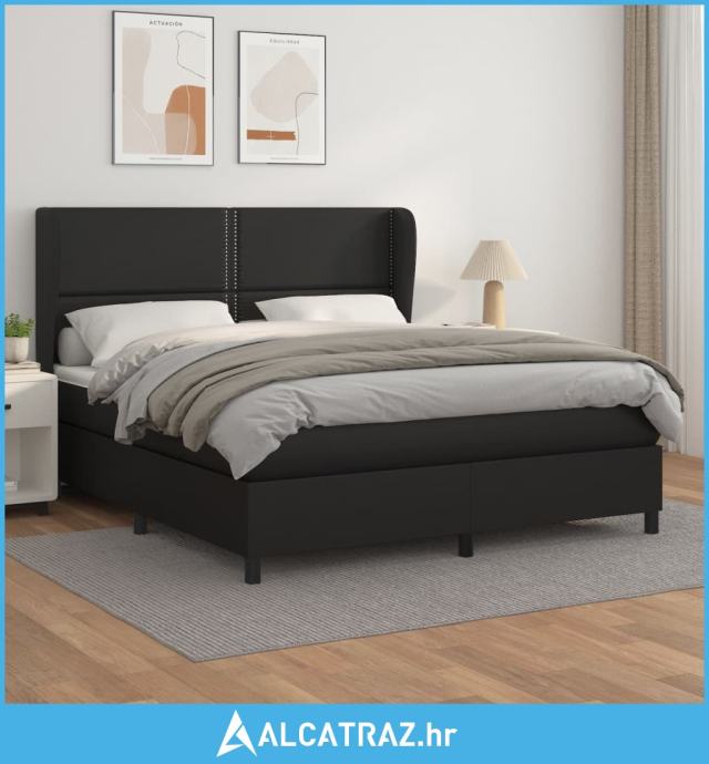 Krevet s oprugama i madracem crni 160 x 200 cm od umjetne kože - NOVO