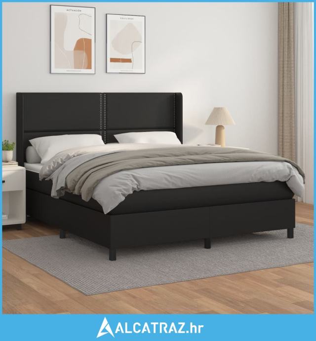 Krevet s oprugama i madracem crni 160 x 200 cm od umjetne kože - NOVO