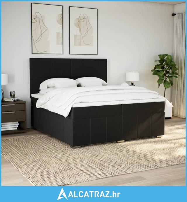 Krevet s oprugama i madracem crni 200x200 cm od tkanine - NOVO