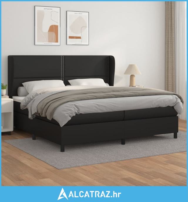 Krevet s oprugama i madracem crni 200x200 cm od umjetne kože - NOVO