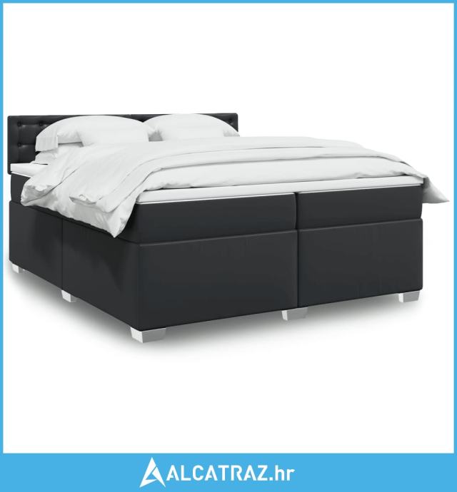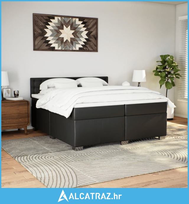 Krevet s oprugama i madracem crni 200x200 cm od umjetne kože - NOVO