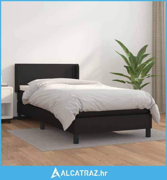 Krevet s oprugama i madracem crni 90 x 200 cm od umjetne kože - NOVO