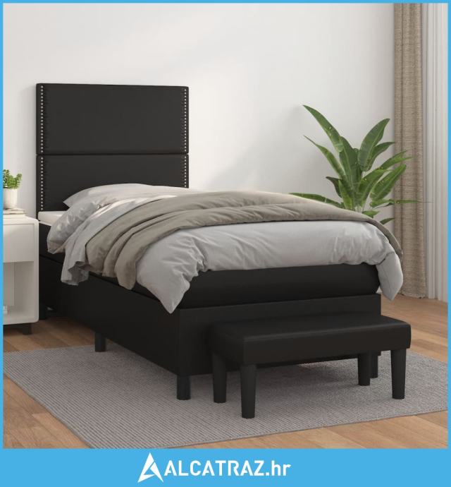 Krevet s oprugama i madracem crni 90 x 200 cm od umjetne kože - NOVO