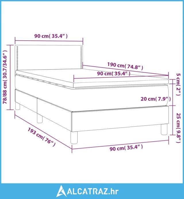 - Dimenzije: 90 x 190 x 20 cm (Š x D x V)