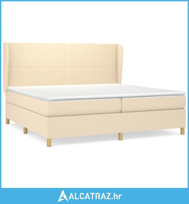 Krevet s oprugama i madracem krem 200 x 200 cm od tkanine - NOVO