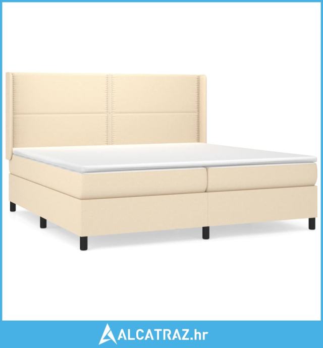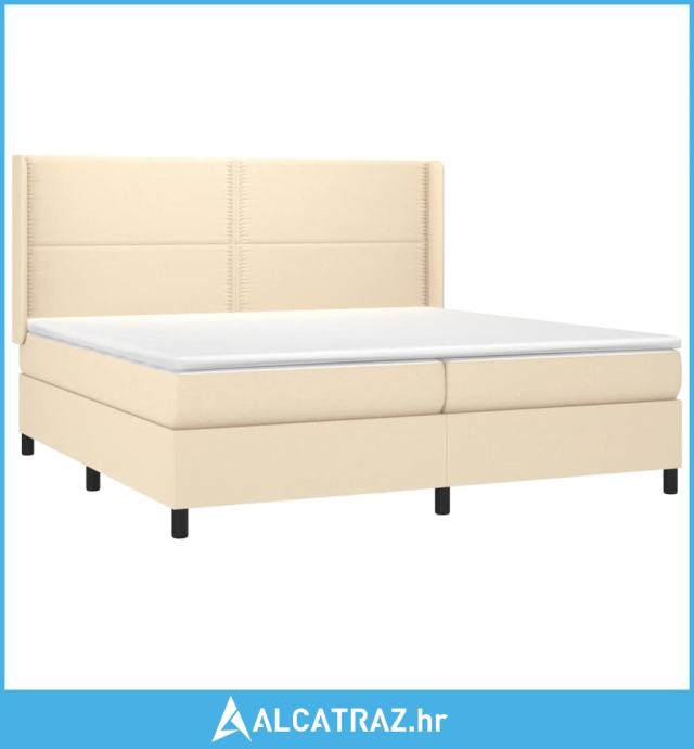 Krevet s oprugama i madracem krem 200 x 200 cm od tkanine - NOVO
