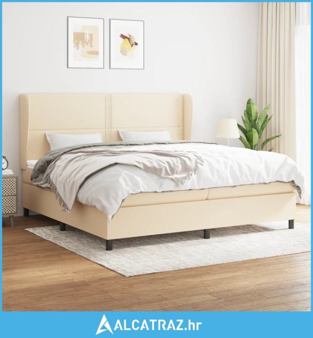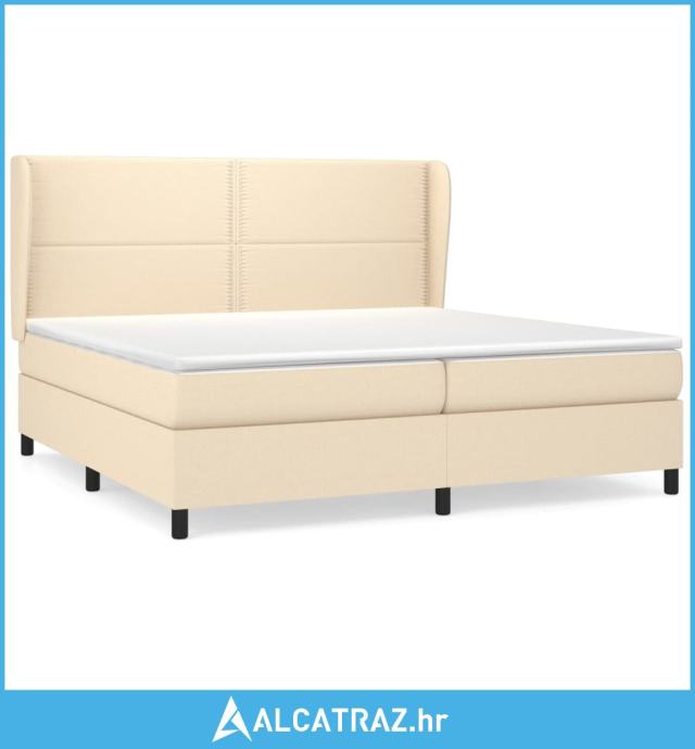 Krevet s oprugama i madracem krem 200 x 200 cm od tkanine - NOVO
