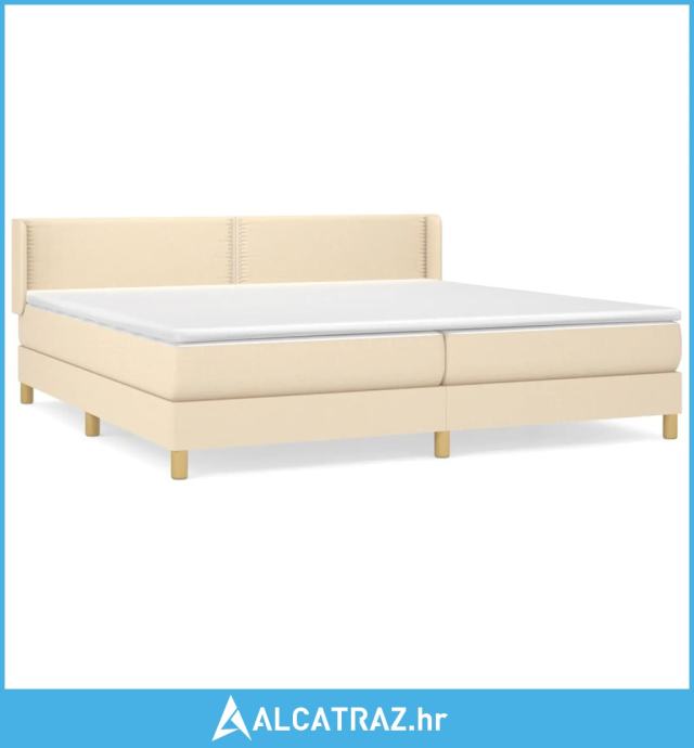 Krevet s oprugama i madracem krem 200 x 200 cm od tkanine - NOVO