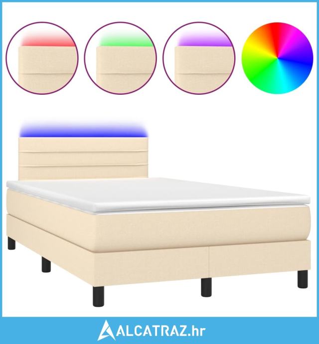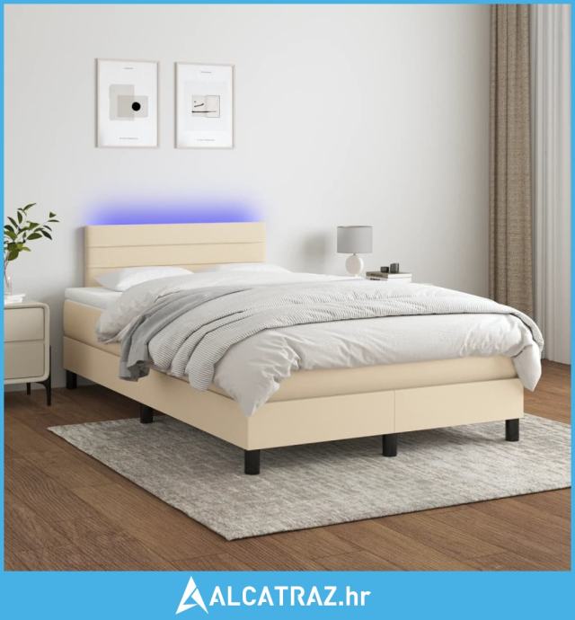 Krevet s oprugama i madracem LED krem 120 x 190 cm od tkanine - NOVO
