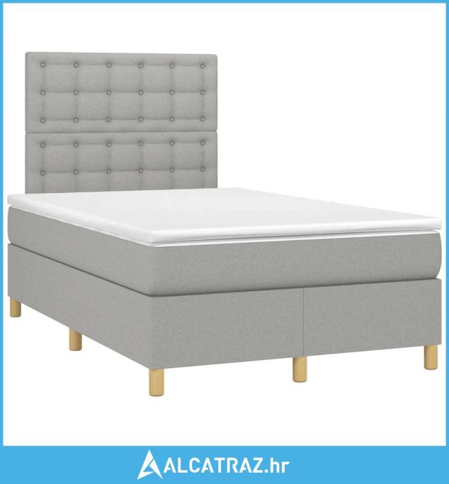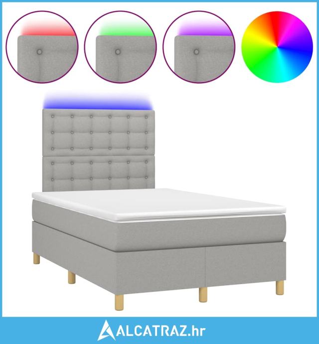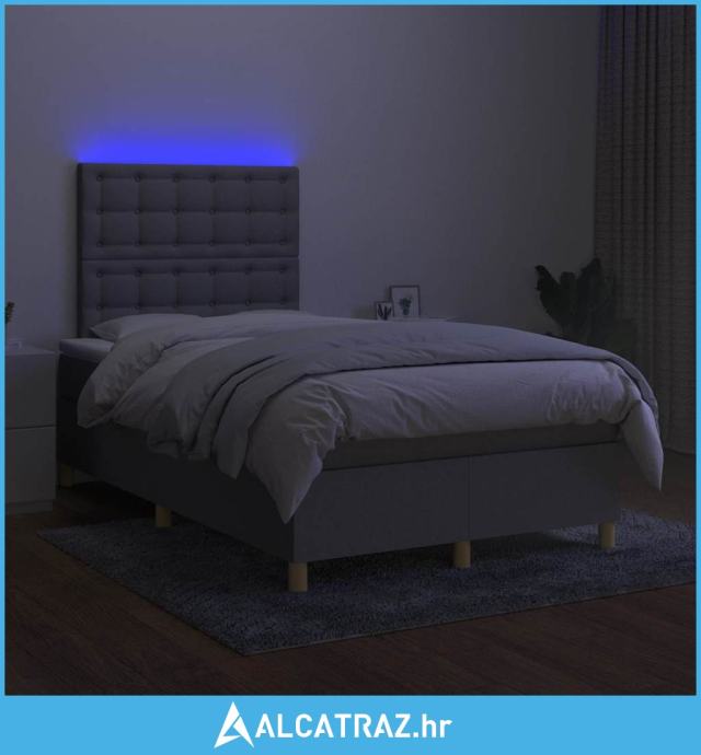 Krevet s oprugama i madracem LED svjetlosivi 120x190 cm tkanina - NOVO