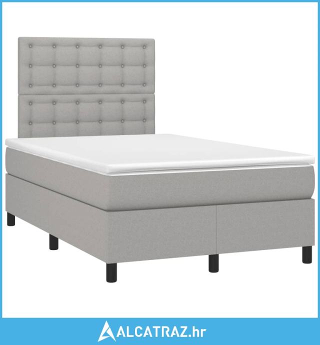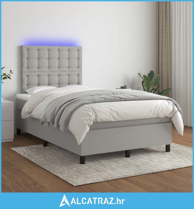Krevet s oprugama i madracem LED svjetlosivi 120x190 cm tkanina - NOVO