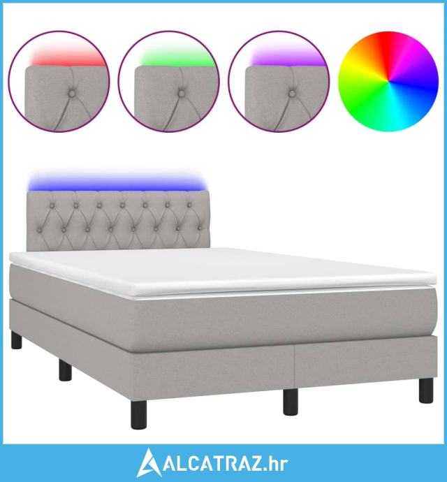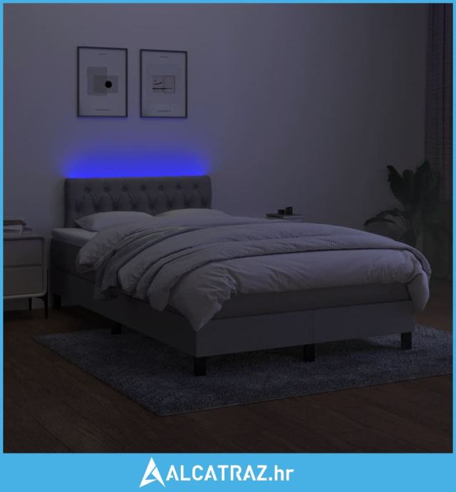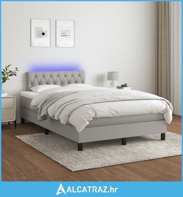 Krevet s oprugama i madracem LED svjetlosivi 120x190 cm tkanina - NOVO