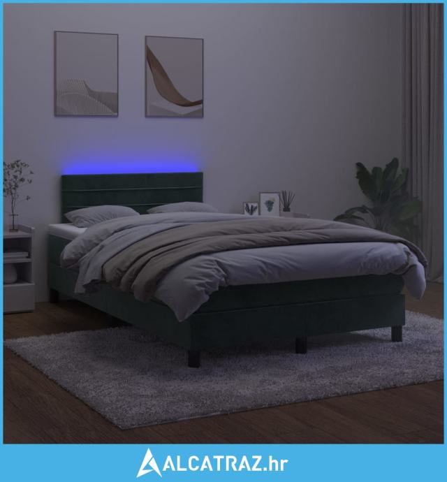 Krevet s oprugama i madracem LED tamnozelenim 120x190 cm baršun - NOVO