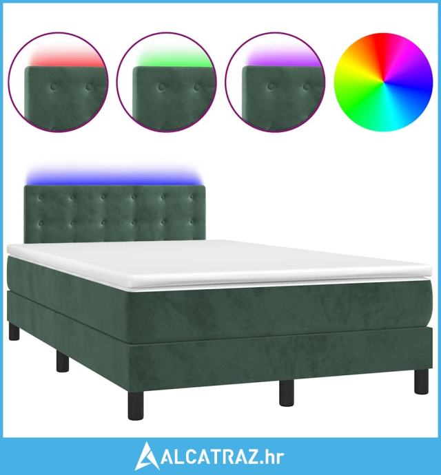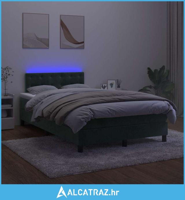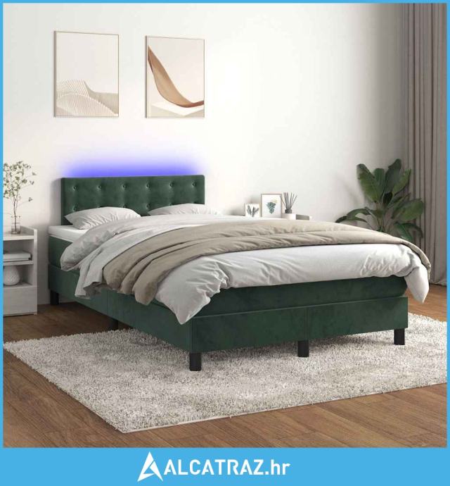 Krevet s oprugama i madracem LED tamnozelenim 120x190 cm baršun - NOVO